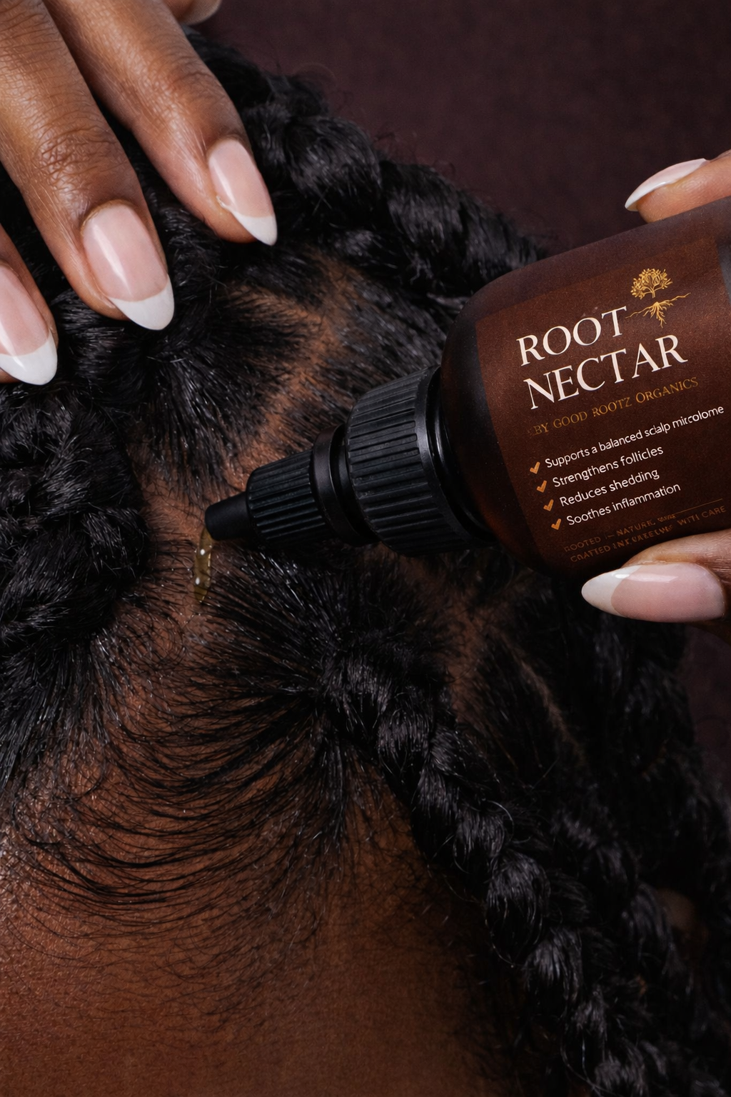 Ingredients: Nettle Leaf, Rosemary Leaf, Horsetail, Amla, Aloe Leaf, Hibiscus, Marshmallow Root. Root Nectar Scalp Strengthening Oil: A concentrated Ayurvedic oil blend designed to heal and strengthen the scalp. Apply a small amount of Root Nectar directly to the scalp. Massage for 3–5 minutes. Apply 3–5x weekly or as needed.